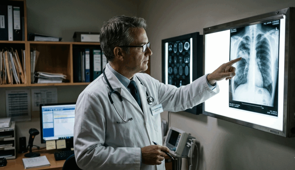 El examen de Lectura ILO comienza con la obtención de una radiografía de tórax de alta calidad técnica, indispensable para una correcta interpretación. Posteriormente, un médico certificado en el sistema ILO analiza la imagen comparándola con un conjunto de radiografías de referencia estandarizadas por la OIT.